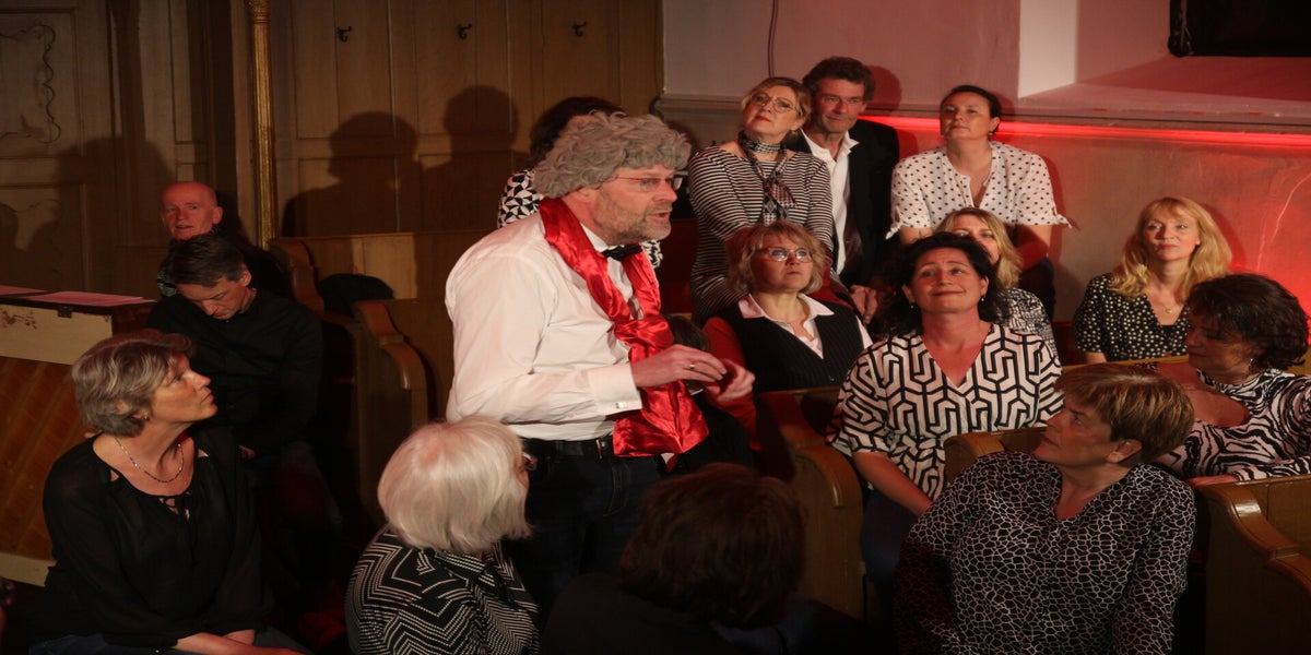Een echt locatie-voorstelling deze keer. In samenwerking met Herjan en Bernadette van eetcafé Baard maakten we er een compleet uitje van. Een drankje voor- of achteraf? Een hapje eten voor of na de voorstelling? Het kon allemaal in Baard. Op de praam, in de Sint Gertrudiskerk en in eetcafé Baard werd het een geweldige voorstelling!